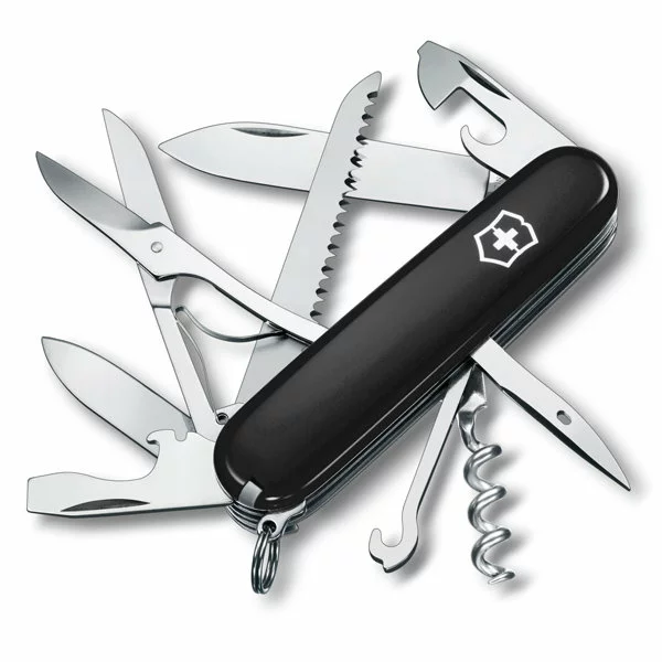 Швейцарский карманный армейский нож Victorinox Huntsman. Лёгкая, компактная и удобная модель с лёгкостью ляжет вам в карман. Кроме того, нож Victorinox весьма практичен и содержит все основные инструменты для повседневной жизни. Нож изготовлен из высококачественной нержавеющей стали. Рукоять выполнена из чёрного глянцевого нейлона. Размер – 91x27x21 мм. Вес – 97 г.