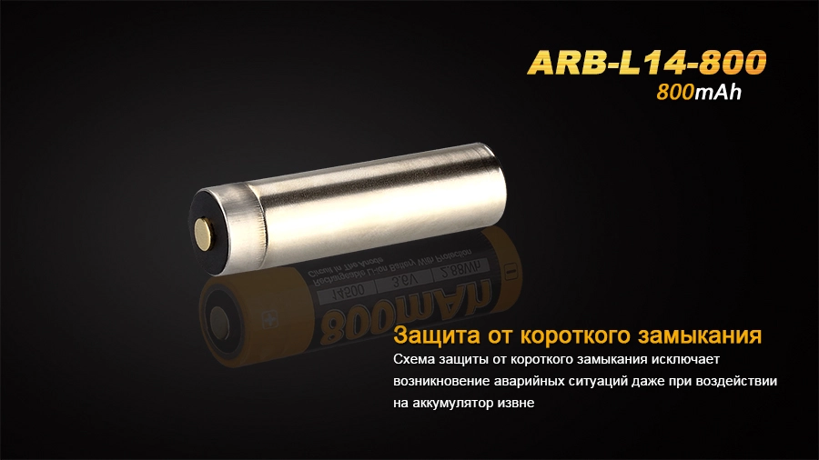 Тривалого терміну служби акумулятора ARB-L14-800 сприяють кілька механізмів захисту, вбудованих в корпус. Цей елемент живлення захищений від занадто сильного заряду або розряду, від короткого замикання і перегрівання під час роботи.