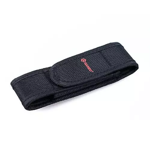 Чохол пошитий з нейлону — матеріалу, відомого міцністю і стійкістю ниток до стирання. Він відмінно переносить ті умови, що характерні для туристичних походів та інших видів активного відпочинку на природі. Розмір чохла по довжині легко регулюється завдяки тому, що він застібається на липучку. Бокові сторони чохла виконані з більш тонкої стропи, а знизу є невеликий відкритий ділянку, у який можна протягнути темляк ножа або ланцюжок для додаткової фіксації ножа, приміром, на лямці рюкзака. Можливість перенесення інструмента на ремені пояса передбачена і у самого чохла. Ззаду на ньому є спеціальна лямка, пристегивающаяся до основи за допомогою кнопки. Таким чином, ніж в чохлі легко повісити на ремінь або зняти, коли це буде потрібно. Крім того, є металеве кільце, за яке чохол також можна підвісити. Загальний розмір чохла становить 23,2 см, але в закритому вигляді він зменшується до 15,2 див. Втім, довжину закритого Knife bag можна регулювати, адже він застібається за допомогою широкої липучки. Ширина даного аксесуара становить 3 див.