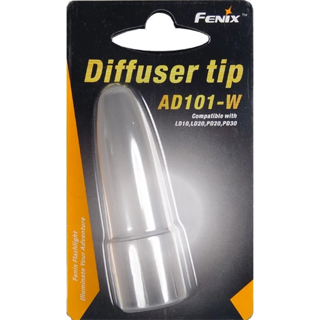 Недорогий та компактний дифузійний фільтр-насадка білого кольору для ліхтарів від компанії Fenix. Дифузійний фільтр застосовується для отримання розсіяного освітлення в сутінках і в темний час доби. Дифузійний фільтр-насадка виконаний з високоякісного ударостійкого пластику РС2805, стійкого до теплового впливу.