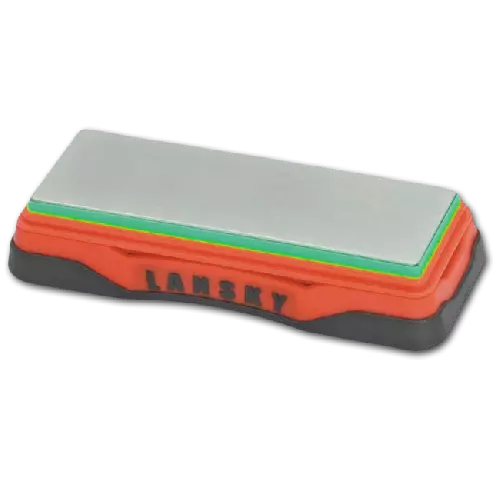 Точильний камінь має розмір 152мм на 50мм, що дозволяє точити ножі середнього розміру. При роботі з алмазним точильним каменем Lansky не слід сильно притискати лезо до поверхні. Це може стати причиною того, що частина алмазних частинок з підстави може раскрошиться.