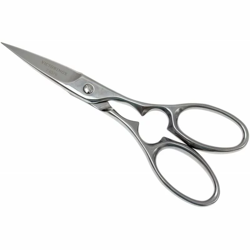 Ножиці повністю зроблені з нержавіючої сталі, кованої. Відносяться до професійної серії. Загальна довжина - 19,5 див. Одна із сторін оснащена микросеррейтором для полегшення процесу нарізування. Ножиці симетричні, тому підходять і для лівшів, і для правші. Відрізняються зручністю конструкції і неперевершеним якістю Victorinox.