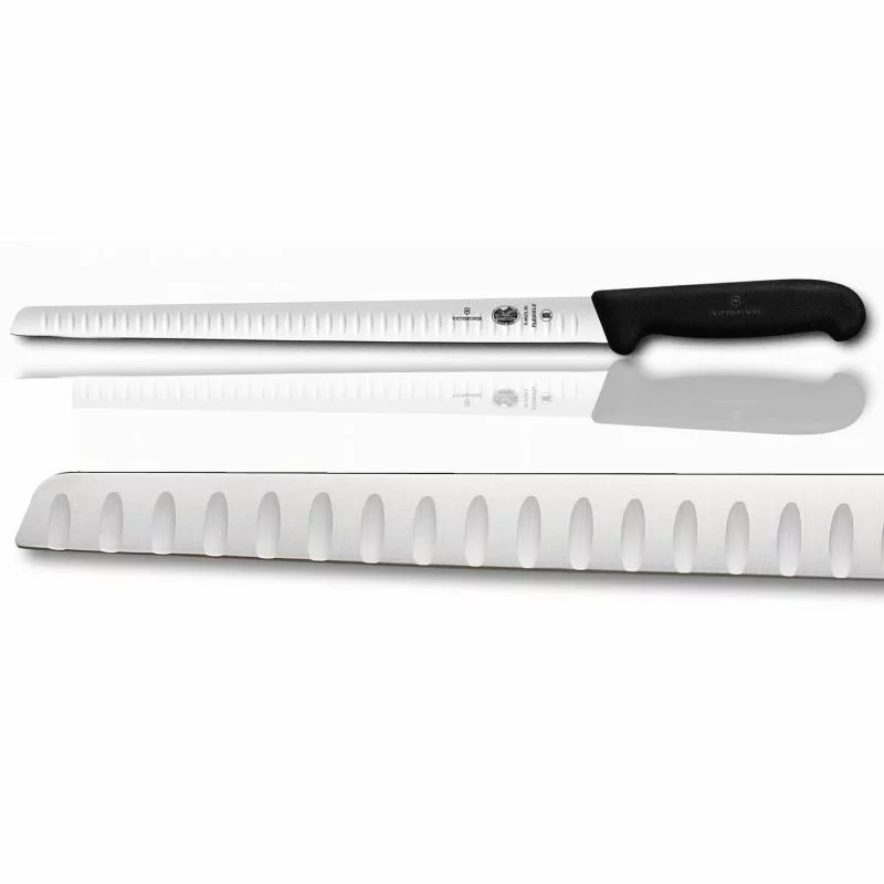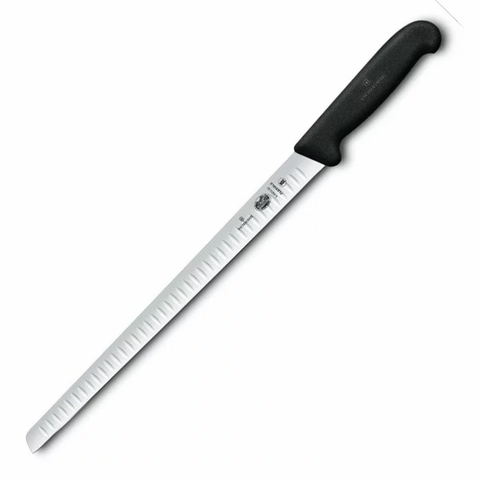 Victorinox Fibrox Salmon Flex - це оригінальний швейцарський кухонний ніж для філе, який стане незамінним помічником для будь-якої господині. Різьблений клинок зручно використовувати для нарізки м'якою риби, наприклад лосося - він не дозволить м'якоті зминатися під час різання. Ніж має гостре сталеве лезо і ергономічну ручку, завдяки чому з ним можна працювати протягом тривалого часу, не втомлюючись.