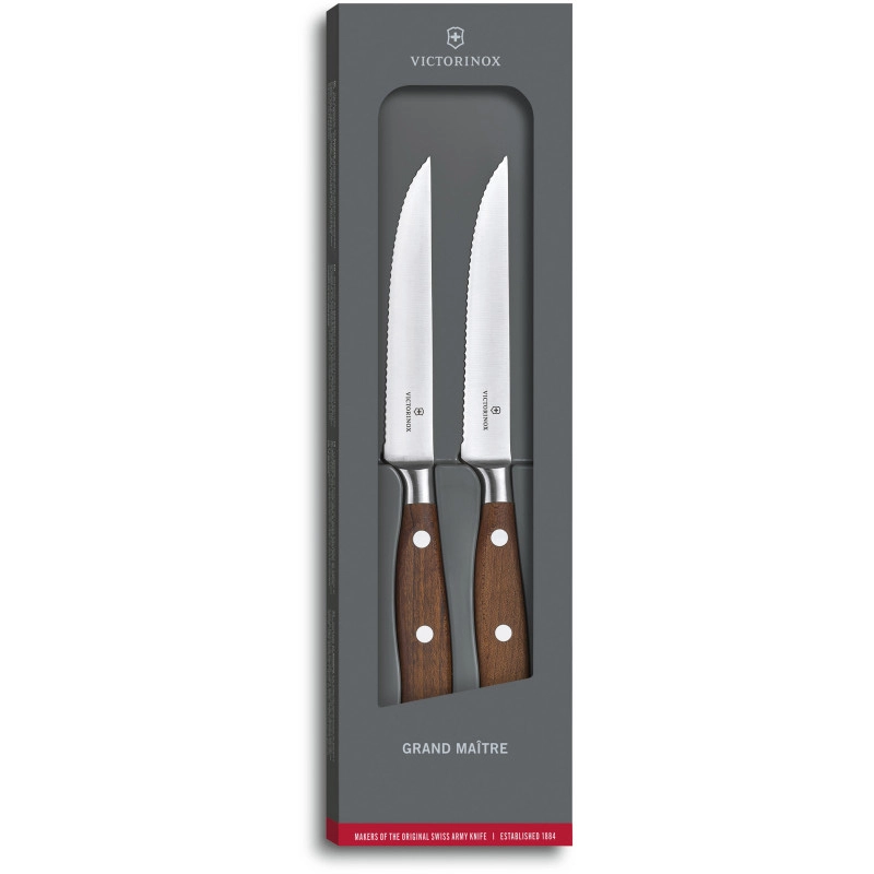 Victorinox GRAND MAITRE Wood Steak Set [7.7240.2 W] - Швейцарський набір з 2-х кованих ножів для стейка з серрейторним лезом 12 см і елегантною дерев'яною рукояттю.