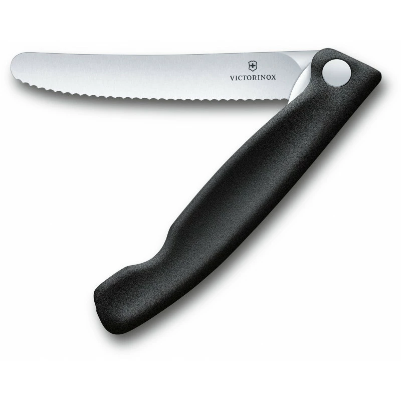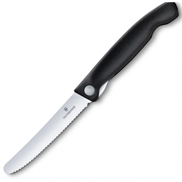 Кухонный нож Victorinox SwissClassic Foldable Paring 11см закругл.нос, волн. с черн. ручкой (блистер)