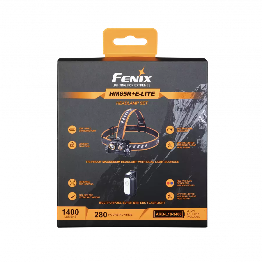 Ліхтар налобний Fenix HM65R + Ліхтар універсальний Fenix E-LITE