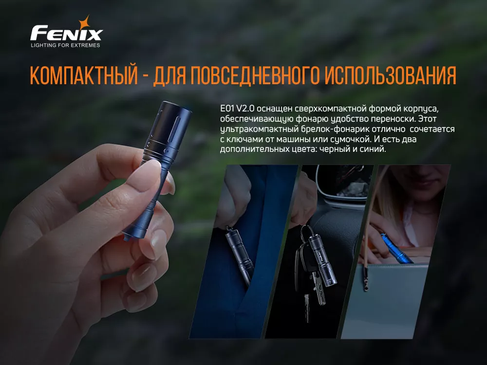 | Комплектація | Ліхтар Fenix E01 V2.0, батарея