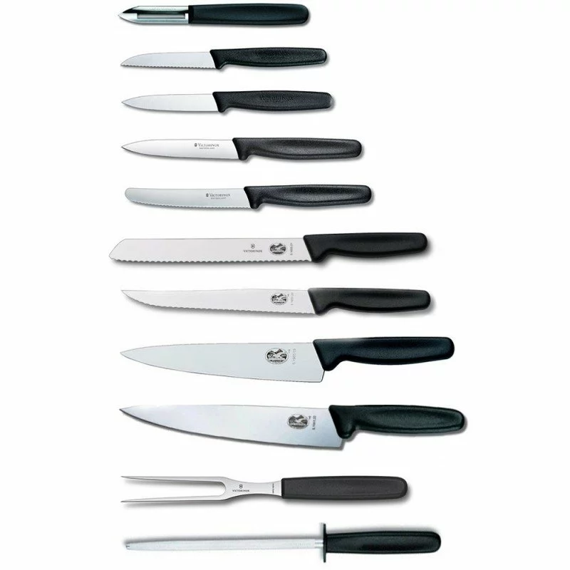 Набір кухонних ножів Standard Cutlery Block 11 предметів (8 ножів, мусат, обробна вилка, овощечистка) з чорною ручкою + підставка Victorinox 5.1153.11 Швейцарія