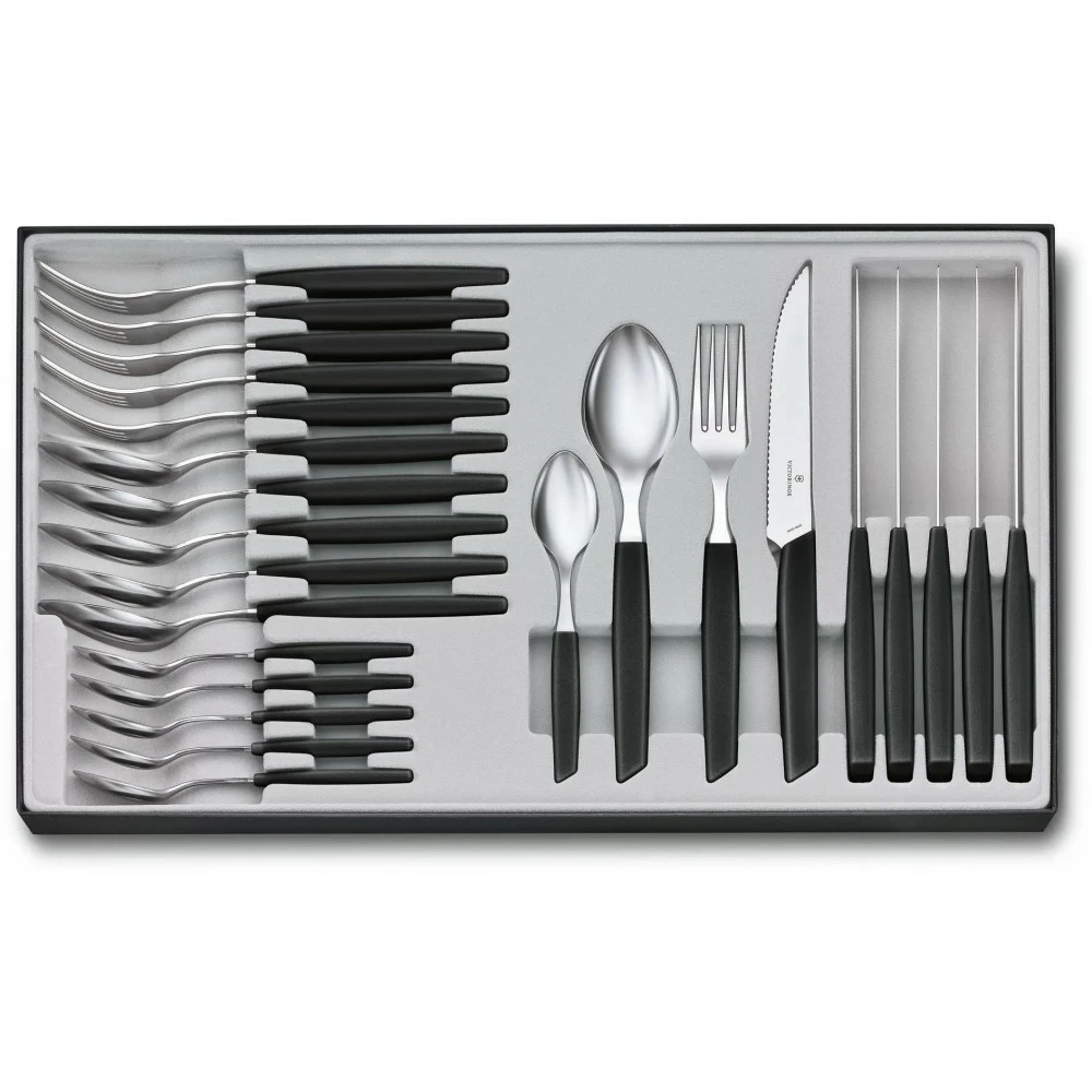 Набор кухонный Victorinox Swiss Modern Table Set 24шт с черн. ручкой (6 ножей steak,6 вилок,6 ложек,6 ложек)