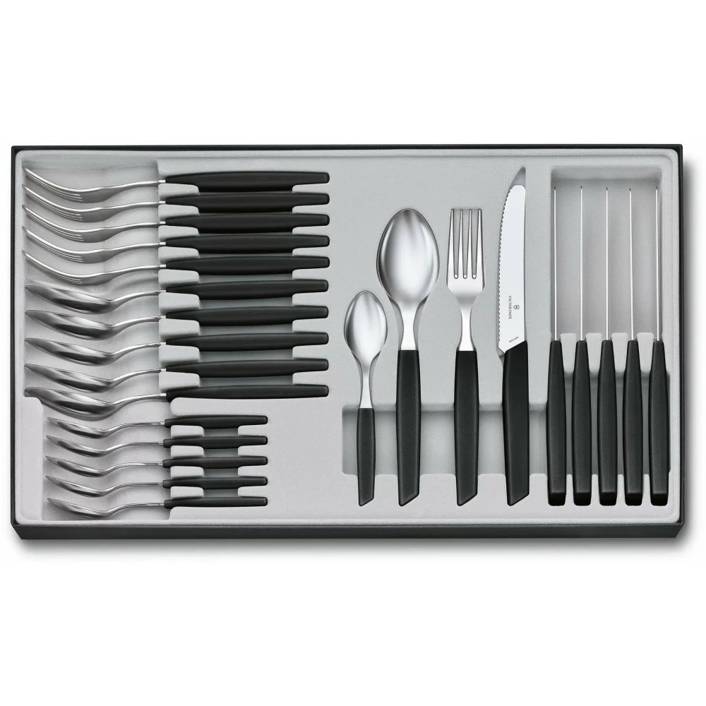 Набор кухонный Victorinox Swiss Modern Table Set 24шт с черн. ручкой (6 ножей tomato,6 вилок,6 ложек,6 ложек)