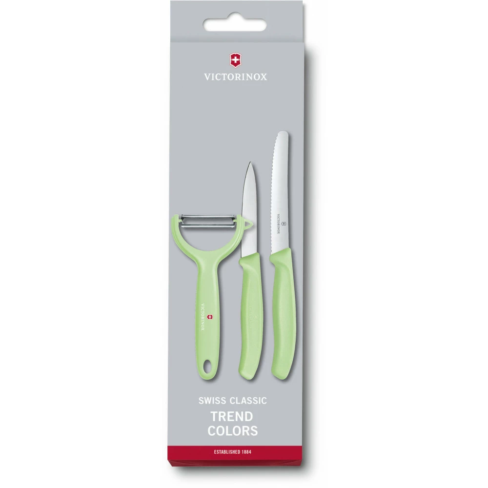 Набор кухонный Victorinox SwissClassic Paring Set 3шт с св.зел. ручкой (2 ножа, овощечистка Tomato and Kiwi) (