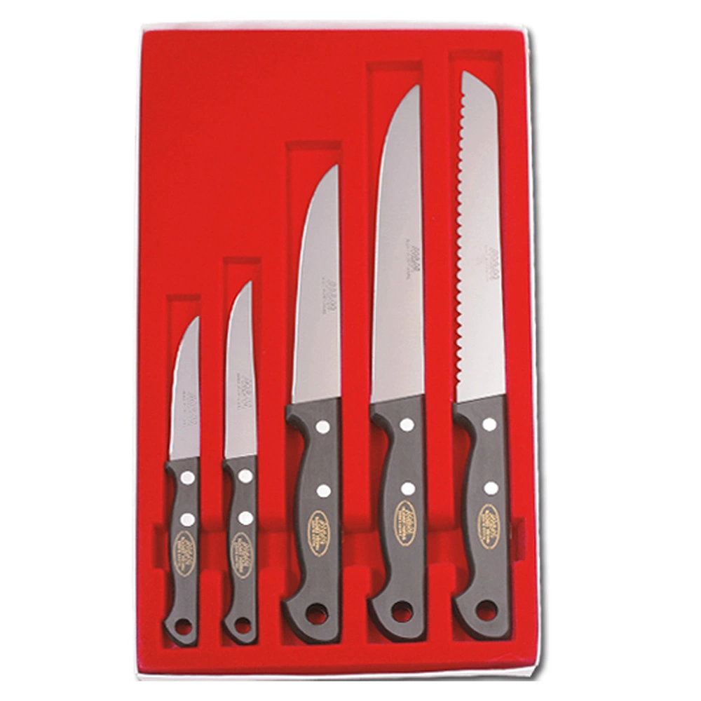 Комплект ножів МАМ №410 складається з п'яти різних інструментів, кожний з яких створений з розрахунку використання на вашій домашній кухні. Це якісні ножі, виконані з довговічних матеріалів. Вони дуже зручні і прості у догляді.