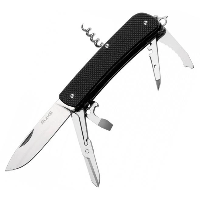 Складні ножі бренду Ruike, що належать до серії «L», зокрема модель L31 були створені з розрахунком на те, щоб при мінімальних габаритах вмістити в корпусі як можна більше інструментів. Варто відзначити, що завдяки старанням інженерів і конструкторів, модель L31 має на «борту» 9 інструментів. Всі вони виконані із загартованої нержавіючої сталі Шведського бренду Sandvik з маркуванням 12С27.Крім клинка з прямою заточкою, модель Ruike L31 також має подгруженные ножиці, невелике лезо з хвилеподібною заточкою, викрутку з прямим шліцом, поєднану з відкривачкою, багатофункціональний шило, відкидне вушко для кріплення темляка, штопор, склобій, а також знімні щипці, «заховані» в одній з «пластин» рукояті.