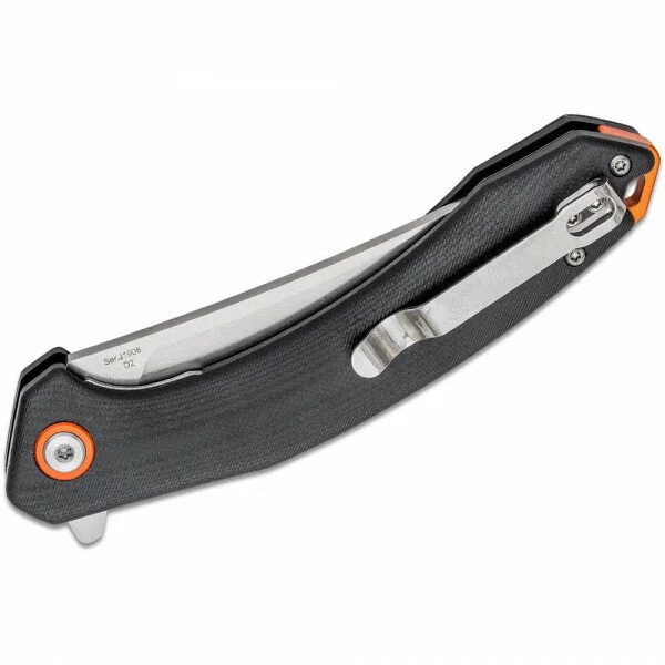 Накладки на рукоять виготовлені з полірованого склотекстоліти G-10. Матеріал приємний на дотик і запобігає зісковзування ножа в руці. Модель оснащена двостороннім кліпсою для глибокого носіння і отвором для кріплення темляка.