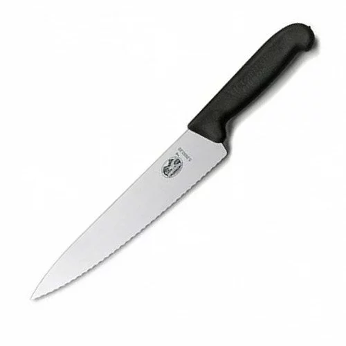 Ніж кухонний Victorinox Fibrox Carving обробний 19 см чорний серрейтор (Vx52033.19)