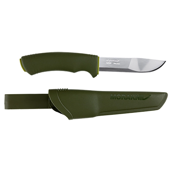 Як відомо, продукція Morakniv являє собою поєднання прекрасних робочих характеристик і невисокої вартості. Дана модель це тільки підтверджує правило. Піхви з пластику оснащуються кріпленням для ременя, також передбачено отвір для відтоку води. Тип ножа – фіксований. Рукоять має дуже зручні подпальцевые виїмки, тому тримати виріб і користуватися ним дуже комфортно. У складі рукояті – пластик і гума. Ергономічна ручка, ніж не ковзає під час використання.