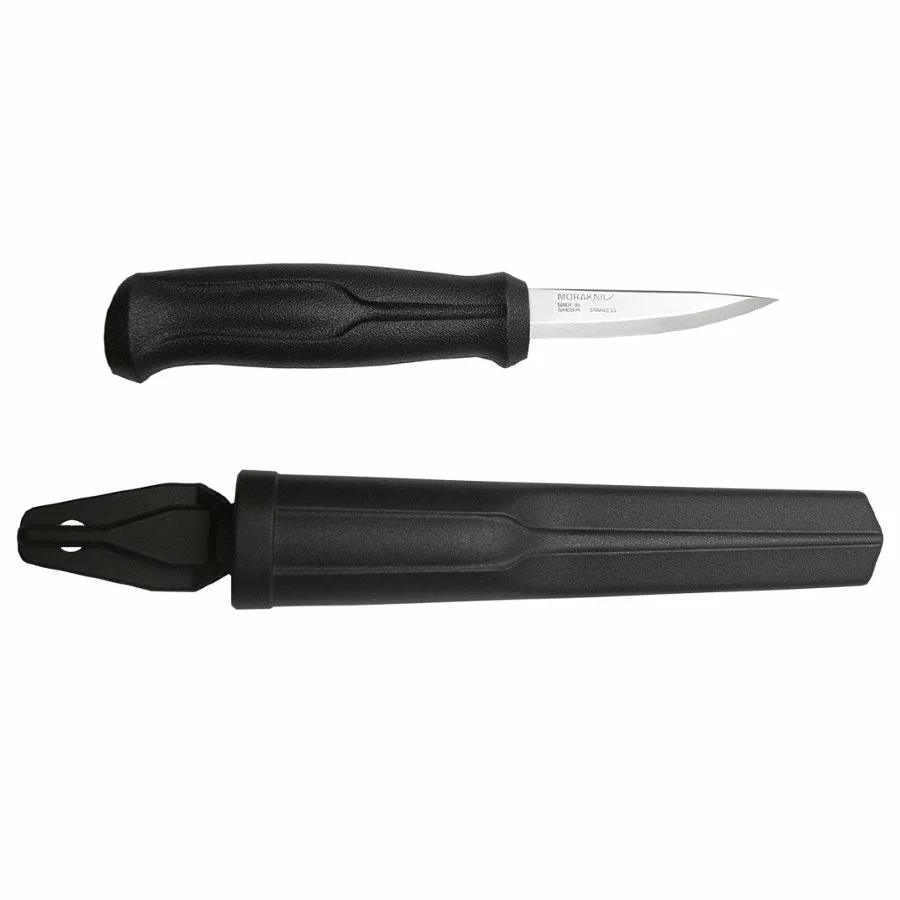 Модель Morakniv Wood Carving Basic відноситься до числа ножів, призначених для ремісничих робіт, а саме — різьбі по дереву. Його лезо виготовляється з нержавіючої сталі і навіть у випадку інтенсивної експлуатації, довго залишається гостро заточеним. Недоліком в цьому випадку можна назвати необхідність постійно стежити за тим, щоб ніж залишався сухим. Заточення у Wood Carving Basic — пряма. Лезо має гострий кінчик і максимальну товщину 2 мм, При цьому, його довжина досягає 75 мм.