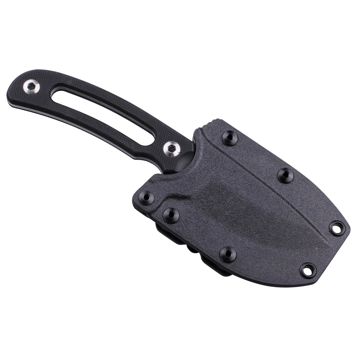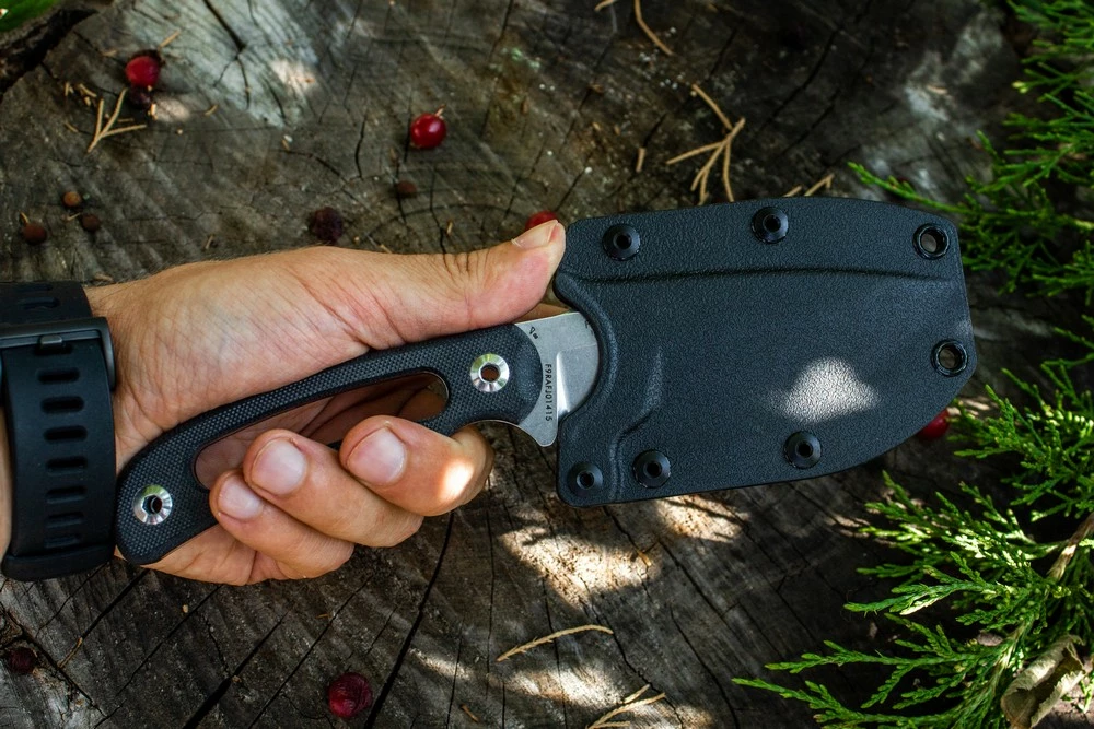 Рукоять виконана з композиту G10, виготовленого з безперервної стек гілок склотканини. У цього матеріалу відмінна стійкість до механічних пошкоджень. Форма ручки забезпечує надійний хват, є спеціальна захист пальців від випадкових пошкоджень. Для полегшення рукояті, в її центрі виконано овальне отвір, але воно абсолютно не впливає на відмінну міцність і зручність ножа.
