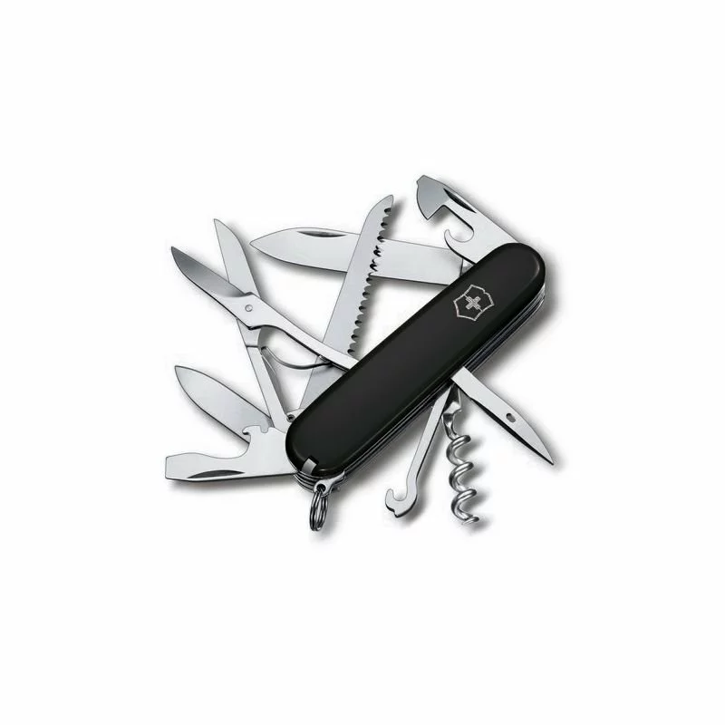 Великий армійський ніж HUNTSMAN 91мм/4 шари/15 функцій/чорні накладки/гак/штопор/ножиці/пила (блістер) Victorinox 1.3713.3B1 Швейцарія
