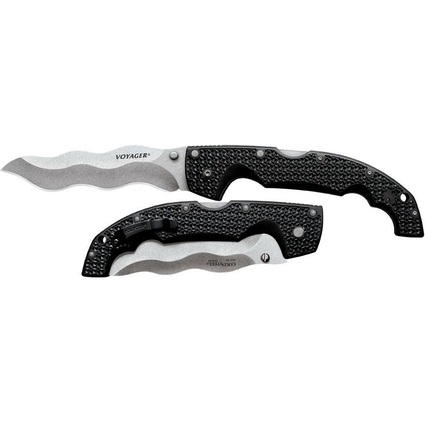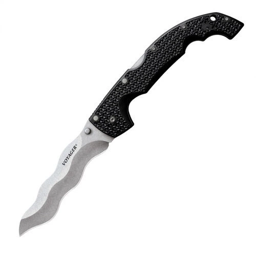 Voyager - одна із самих надійних моделей в асортименті Cold Steel: під час випробувань ножа цієї лінійки з клинком 127 мм в розкритому стані він не склався при навантаженні на рукоятку в 54,45 кг. Завдяки поєднанню надійності і практичності, Voyager можна назвати одним з найбільш універсальних складних ножів, які можуть використовуватися як в міських умовах, так і в аутдорі.