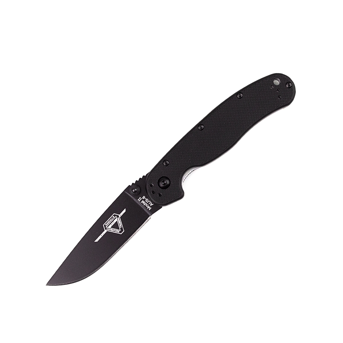 Саме вона багато років лідирує у всіляких рейтингах і опитуваннях по популярності серед користувачів. Тепер компанія Ontario knives випустила модель Rat Model II, яка відрізняється від попередньої своїм розміром. Клинок Ontario Rat Model II ON8861 виготовлений з чудової за своїм сукупним характеристиками нержавіючої сталі AUS-8. Вона легко заточується і непогано протистоїть корозії. Рукоять традиційно виготовлена з нейлону чорного кольору, а замок у ножа той самий надійний Liner Lock. Кліпса Rat Model II може бути переставлена в чотири положення. Також на торці рукояті присутній отвір для темляка.
