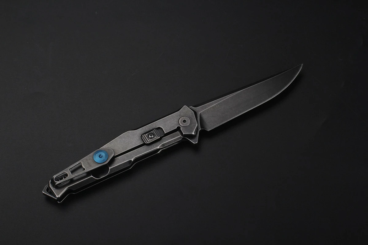 Так, клинок виготовлено з сплаву 14C28N — одного з кращих для кухонних ножів та інших, яким має частий контакт з водою. У нього висока опірність до будь-яких видів корозії, а разом з тим — твердість близько 58-60 HRC, що забезпечує хорошу стійкість заточування. Ріжуча кромка ножа зроблена по всій своїй довжині гладкою. А високу міцність клинку забезпечує і досить велика товщина — 3,1 мм. Крім того, що клинок зроблений чорним, він ще і матовий, що досягнуто шляхом шліфування Stone washed.