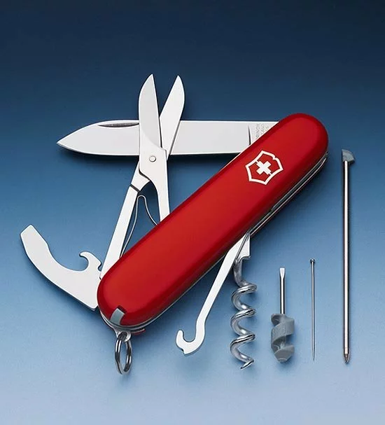 Ніж володіє досить компактними розмірами, тим не менше, це ні скільки не відображається на ступеня його укомплектованості та універсальності. Victorinox Compact має міні-викруткою, шпилькою, кульковою ручкою і багатьма іншими незамінними елементами.
