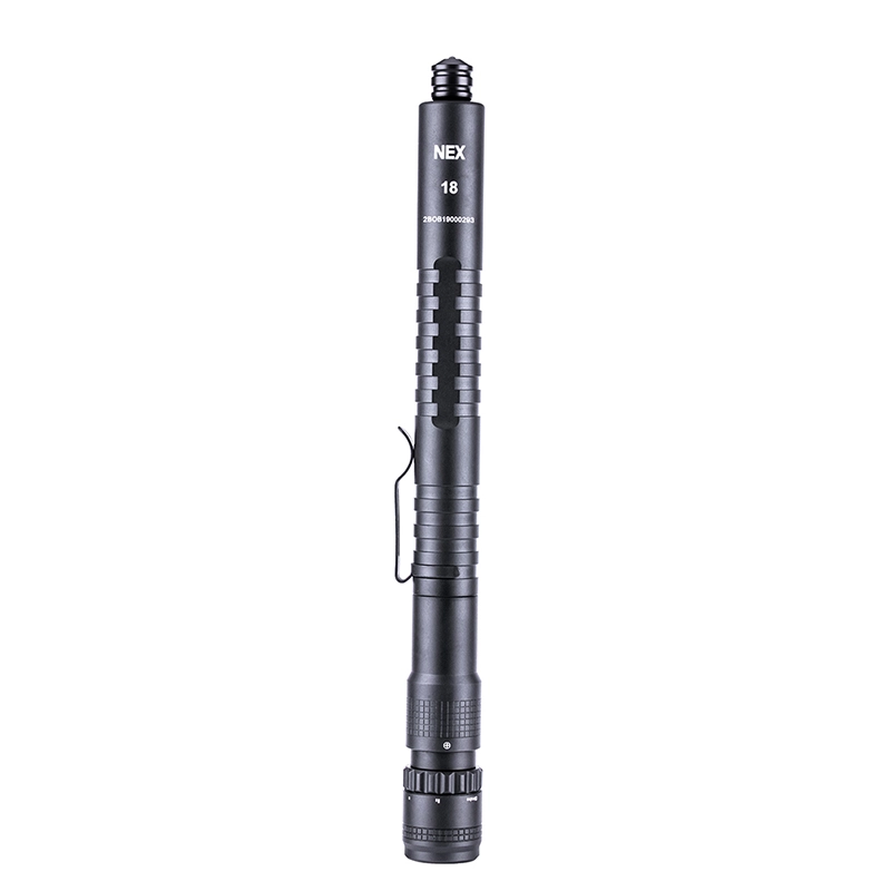 Телескопічна кийок NEX Flashlight N18L являє собою модель з декількома функціями, для захисту. Вона поєднується з ліхтарем, що робить її ще більш корисною і дієвою на практиці. У кийки складна конструкція, її зручно використовувати. Компактно складається, в складеному вигляді не звертає на себе зайвої уваги, тому транспортувати можна приховано. Є жорстка кліпса для закріплення вироби і перенесення. Кліпса у вироби знімна.