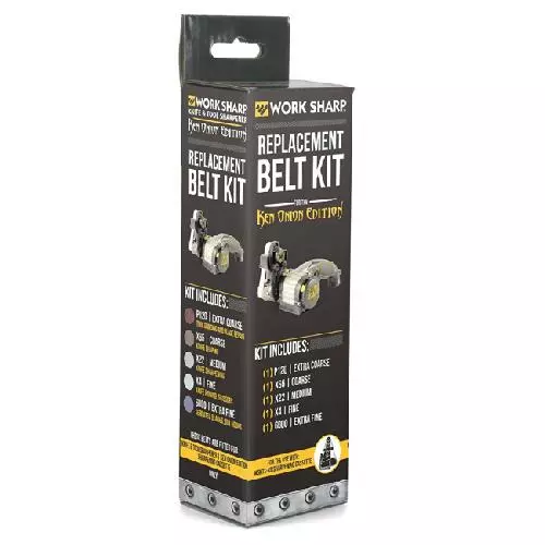 Набір ременів для электроточилки Work Sharp Ken Onion Edition WSSAKO81113 додаткова оснастка, яка здатна продовжити термін служби будь-якого ножа. Паски призначені для электроточилки WSKTS-KO-I. Змінні ремені різної зернистості абразивного поверхні можна використати для ножиць і заточування зсуву. Цю оснастку не слід використовувати для початкового конічного формування.