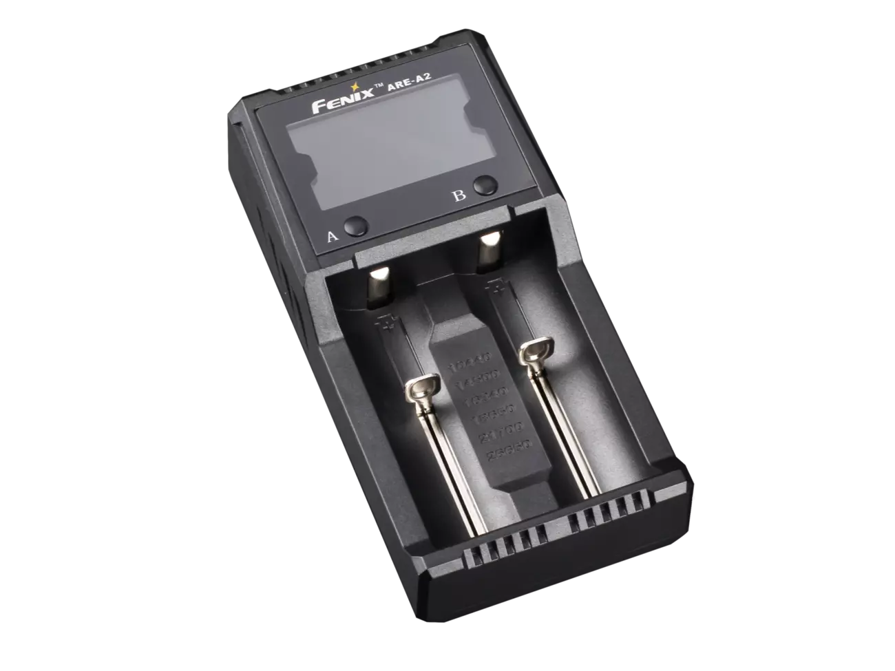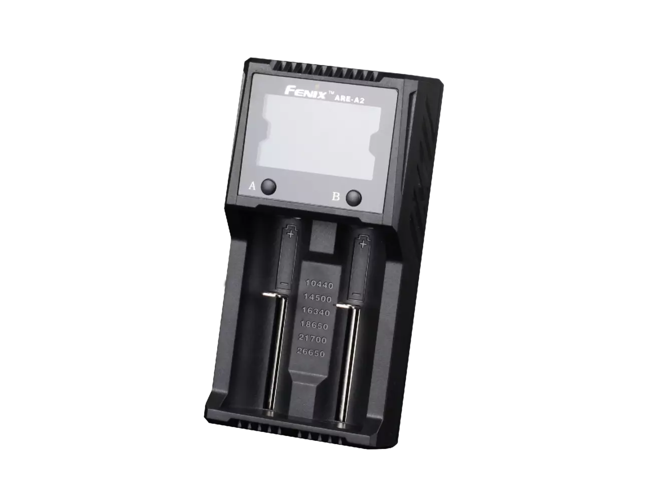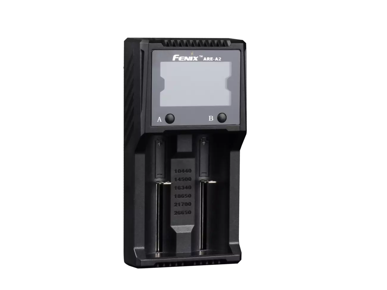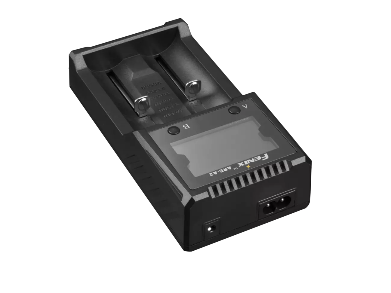 Fenix ARE-A2 працює з елементами живлення з літій-іонним електролітом (формати 18650, 14500, 21700, 10440, 16340, 26650), нікель-металлгидридным і нікель-кадмієвий (формати АА, ААА, С). Одночасно можна заряджати відразу 2 акумулятора, які встановлюються в повністю незалежні осередки. В один і той же час користувач може заряджати пару абсолютно однакових елементів живлення або ж різні акумулятори. У будь-якому випадку, пристрій самостійно їхні продиагностирует і вибере найкращий режим для зарядки. Користувач може стежити за процесом з допомогою вбудованого дисплея. Інформація на ньому також виводиться окремо для кожного каналу, а перемикати режими відображення можна за допомогою двох кнопок в нижній частині екрана. Користувачеві видно поточний статус, тип акумулятора, його вольтаж, час повної зарядки. Якщо користувач хоче вимкнути дисплей, достатньо один раз натиснути на кнопку і трохи потримати, перш ніж відпустити. Ще одне коротке натискання знову ввімкнув екран.