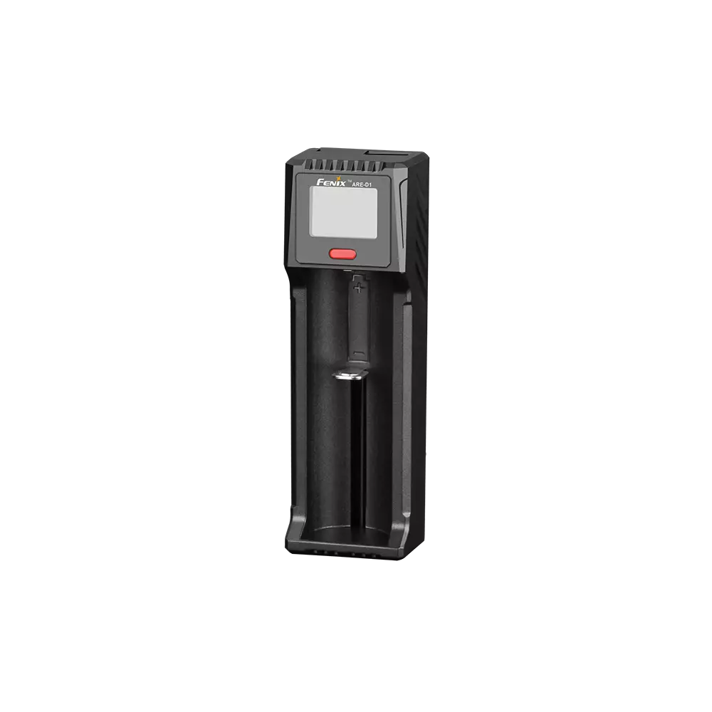 Модель Fenix ARE-D1 – це сучасне зарядний пристрій з 1 слотом для акумулятора. Воно підходить практично для будь-яких умов використання та сумісно з елементами живлення 9 різних типорозмірів. Серед літій-іонних акумуляторів підходять формати 10440, пальчикові 14500, 16340, популярні для ліхтарів 18650, 21700, 26650. Нікель-металгідридні або менш поширені нікель-кадмієві – це формати ААА, АА, С. Слот зарядного пристрою забезпечений рухомий притискної частиною, яка забезпечує щільну фіксацію кожному з перерахованих акумуляторів.