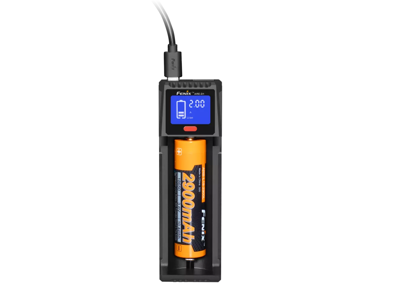 Fenix ARE-D1 можна підключити до джерела енергії через дріт мікро-USB, адаптер стандарту USB. Він також сумісний з power-банками і похідними сонячними панелями. Тому навіть в автономному подорожі далеко від благ цивілізації, власник цього зарядного пристрою зможе поповнити заряд своїх гаджетів. Струм зарядки можна вибрати вручну з 3 доступних варіантів: 0,5 А, 1 А, 2 А. При цьому акумулятор ємністю 2600 маг заряджається повністю приблизно через 1,3 ч. до Речі кажучи, для акумуляторів на основі нікелю допустимо використовувати тільки силу струму 0,5 А чи 1 А. При нормальній роботі зарядний пристрій нагрівається не більше, ніж до 55℃.
